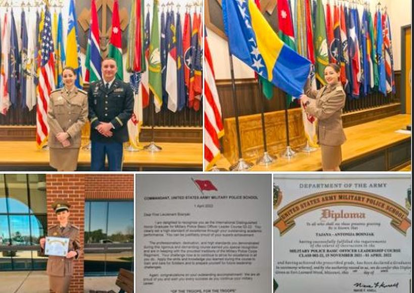 Pripadnica Oružanih snaga Bosne i Hercegovine, poručnica Tajana-Antonija Bošnjak, uspješno je završila “Military Police Basic Officer Leader Course” na Vojnopolicijskoj školi u Fort Leonard Woodu, Missouri – SAD.