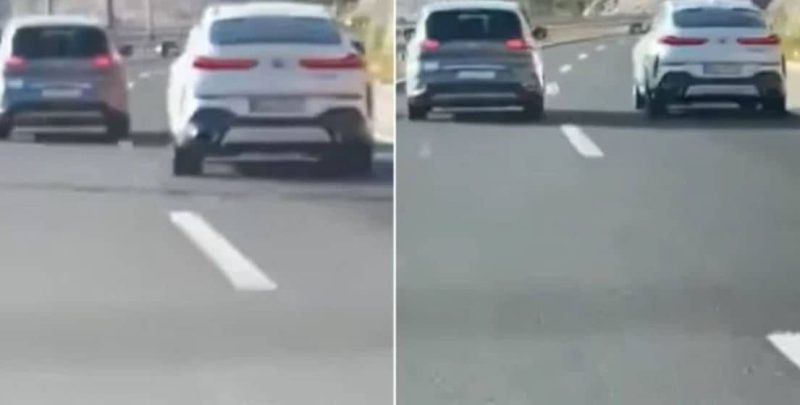 Na snimci se vidi kako se BMW približava sivom automobilu koji se ne miče iz lijeve trake ni nakon što je BMW upalio lijevi žmigavac.